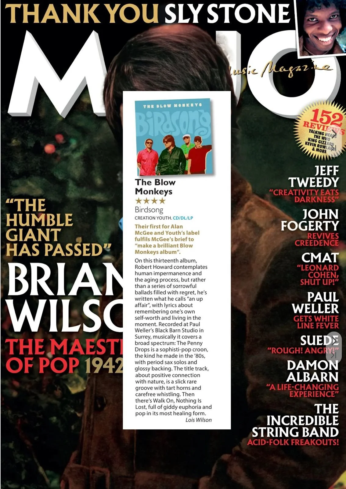 Recorded at Paul Weller’s Black Barn Studios in Surrey and produced by Dr Robert, The Blow Monkeys’ lead singer Robert Howard (aka Dr Robert) is backed throughout Birdsong’s ten-tracks by fellow founding members Neville Henry (sax), Mick Anker (bass), with Crispin Taylor on drums and additional musicians such as Mick Talbot , Gina Foster and Steve Sidelnyk.